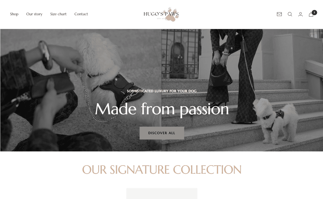 Communicate the dream behind Hugo’s Paws – bringing fashion-level craftsmanship into dog accessories